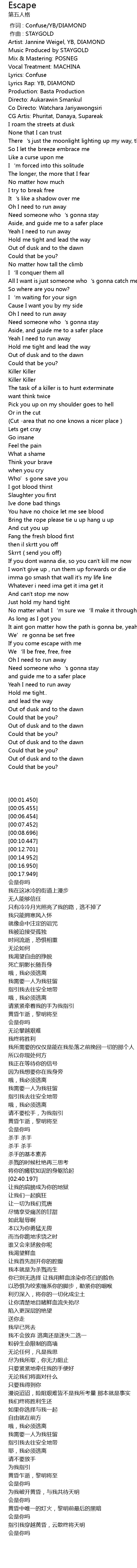 | [00:00.000] | 作词 : Confuse/YB/DIAMOND |