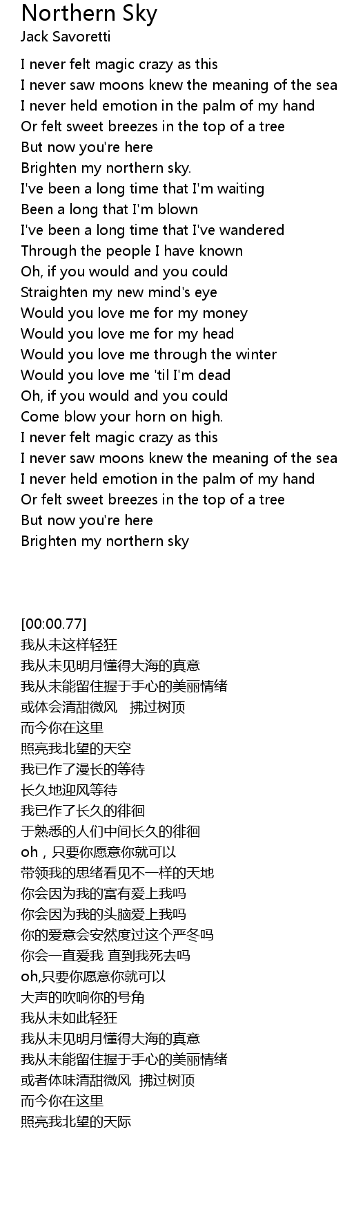 Brighten my northern sky |