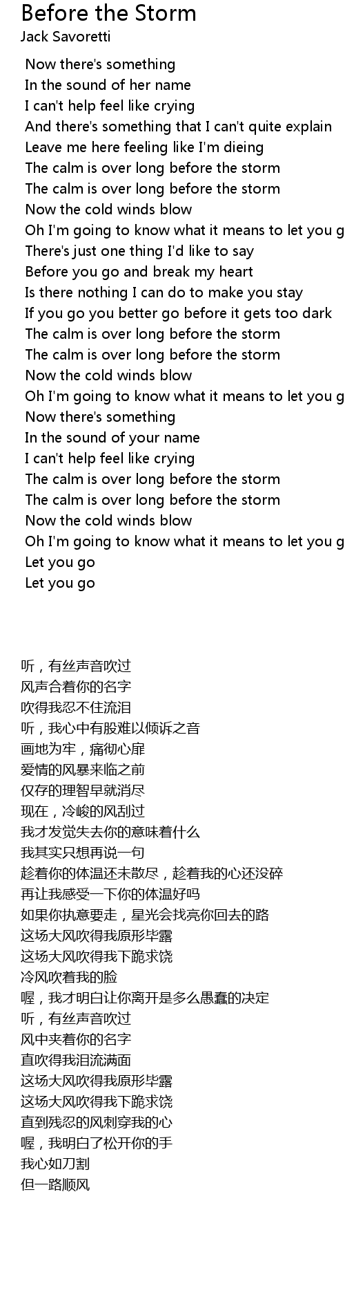 The calm is over long before the storm |