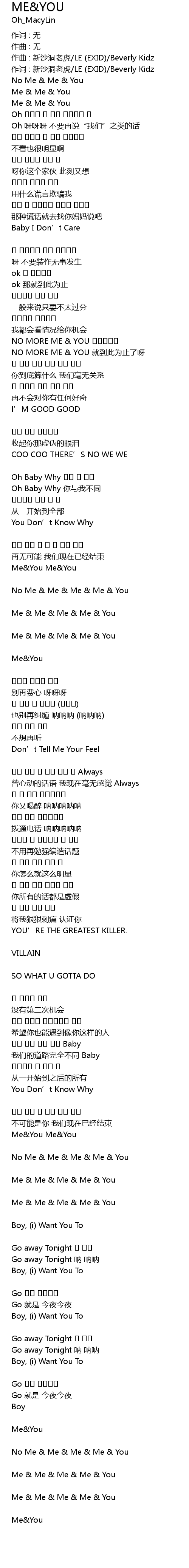 | 歌曲 | ME&YOU |