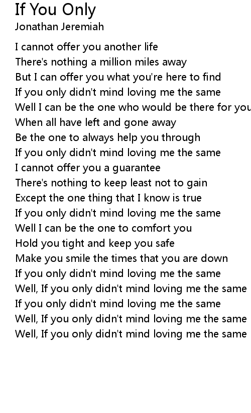 If you only didn't mind loving me the same |
