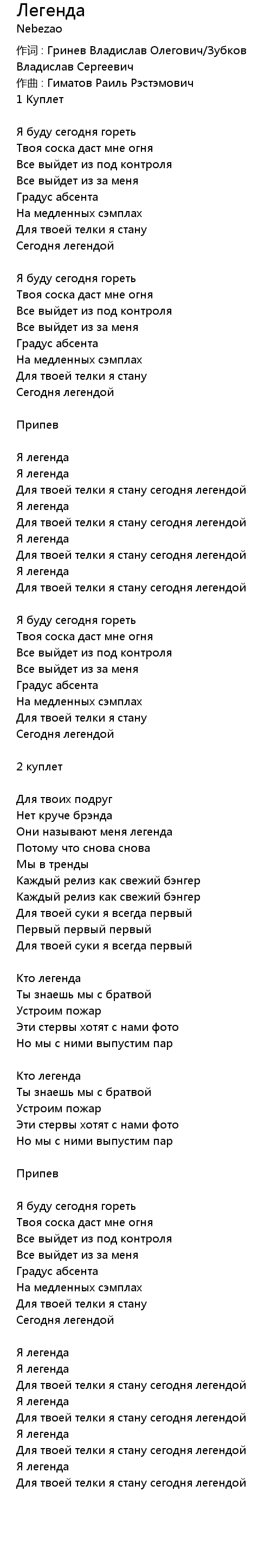 Легенда 歌词