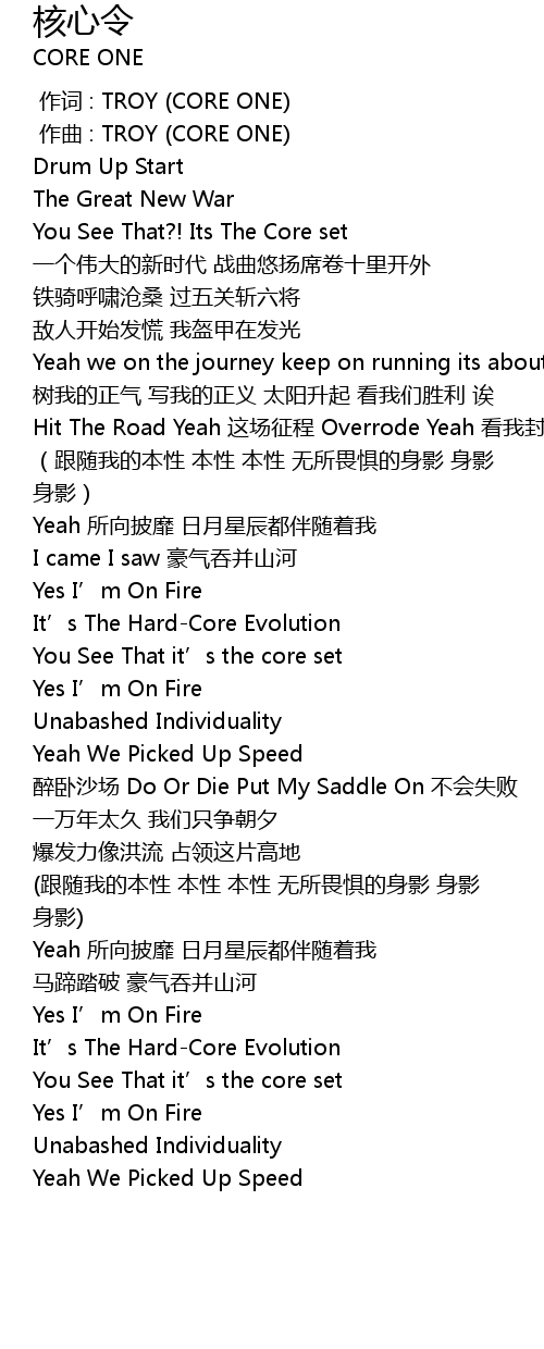 | [00:01.000] | zuo qu : TROY CORE ONE |