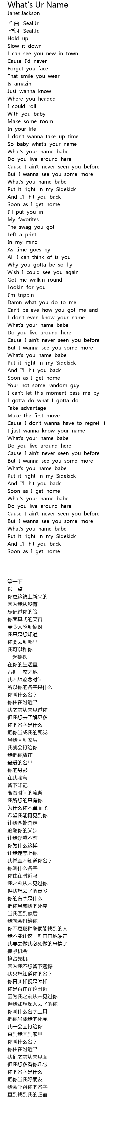 | 歌曲 | What's Ur Name |