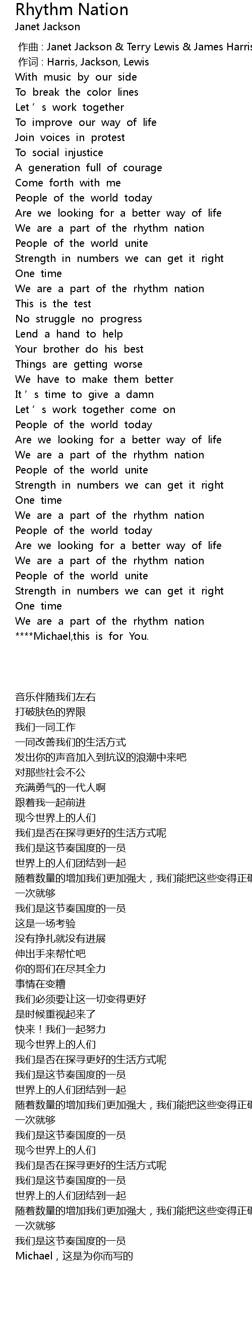 | [02:16.349] | Michael,这是为你而写的 |