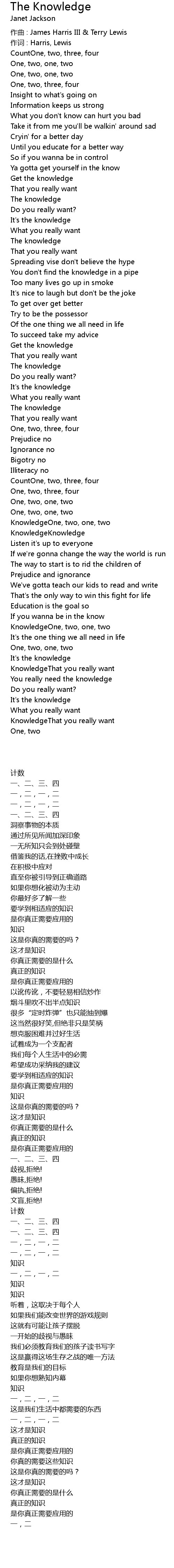 | 歌曲 | The Knowledge |