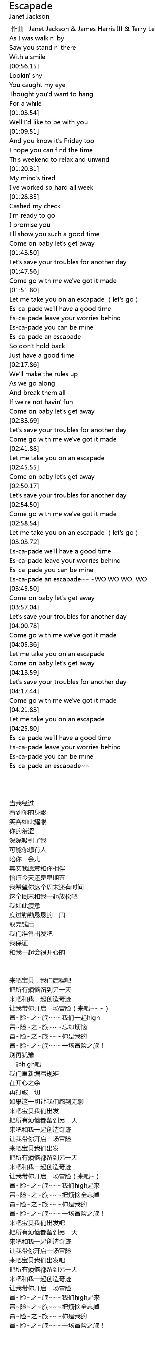| [04:26.65] | Es-ca-pade we'll have a good time |