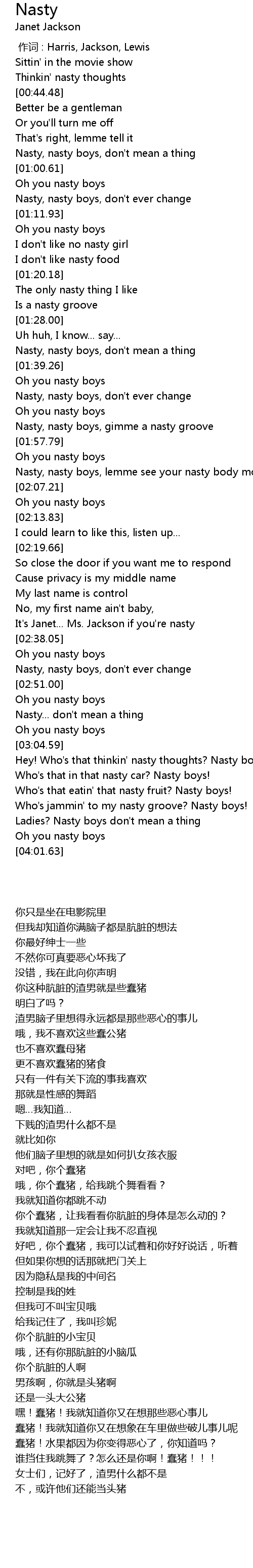 | [02:36.71] | It' s Janet... Ms. Jackson if you' re nasty |