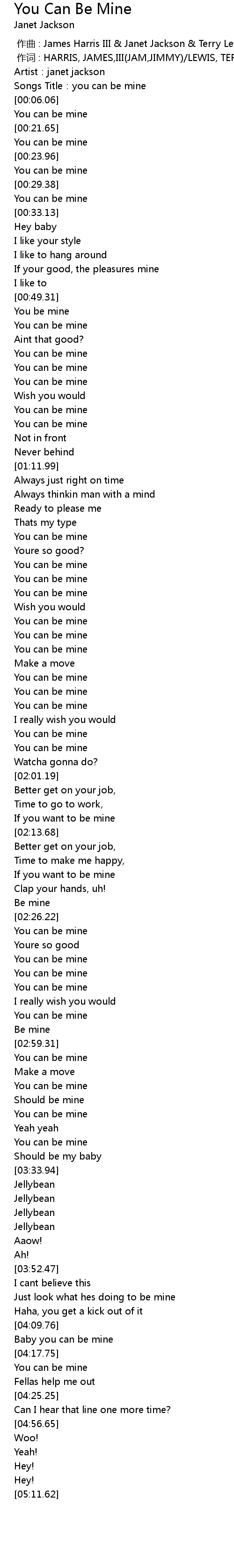 | [00:00.00] | 作曲 : James Harris III & Janet Jackson & Terry Lewis |
