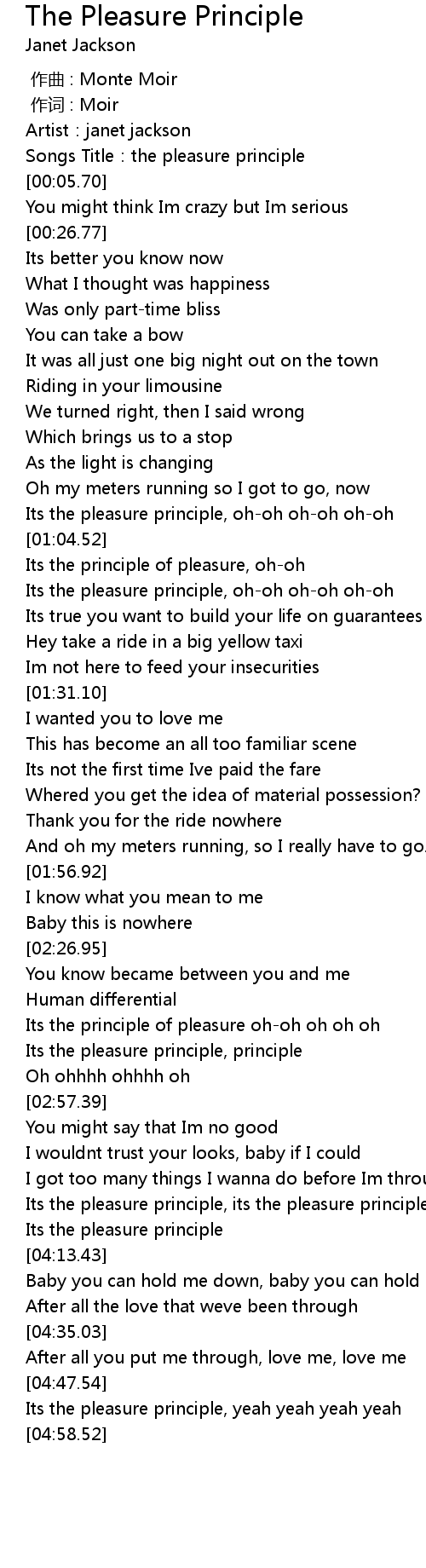 | [02:41.36] | Its the principle of pleasure oh-oh oh oh oh |