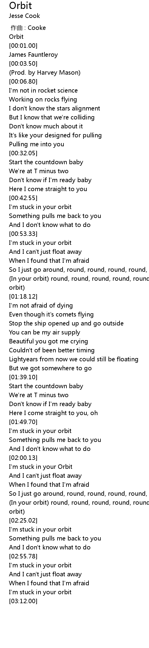 | [02:17.88] | In your orbit round, round, round, round, round, round in your orbit |