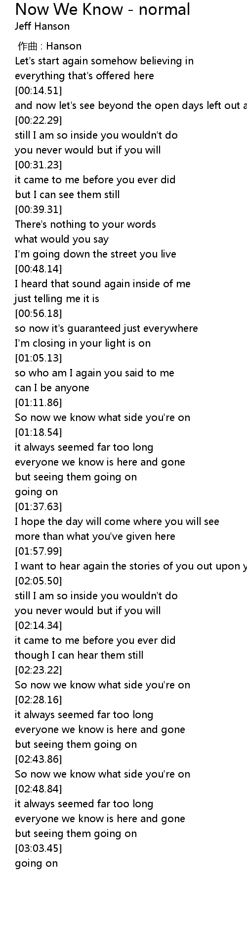 | [00:00.00] | 作曲 : Hanson |
