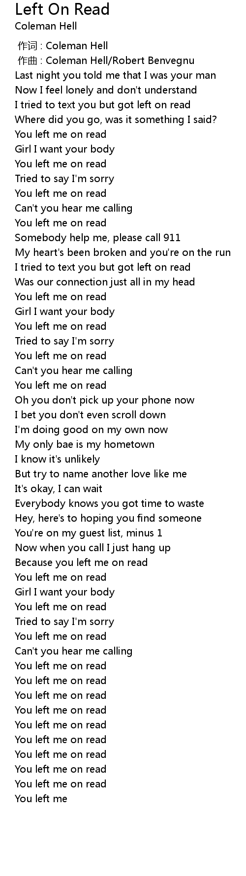 | 歌曲 | Left On Read |