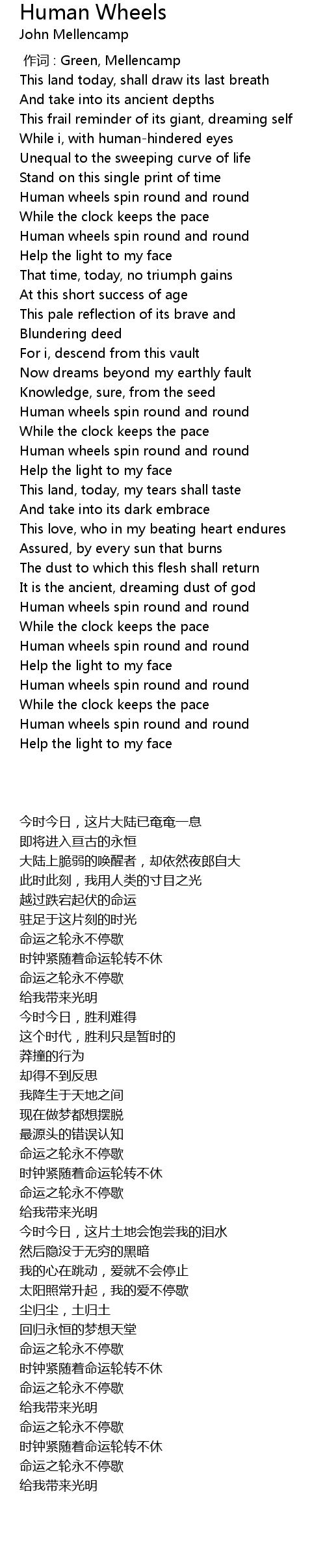 | [00:00.00] | zuò cí : Green, Mellencamp |