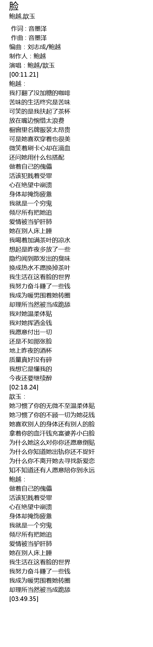 | [00:10.15] | 演唱:鲍越/歆玉 |
