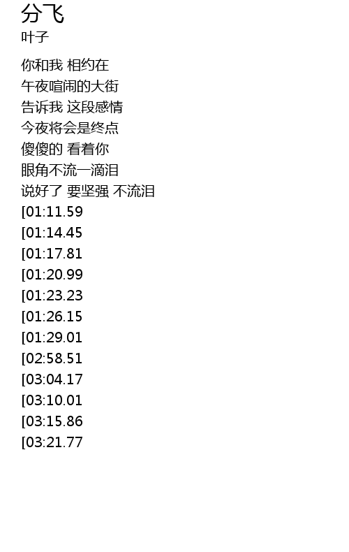 | [02:43.79][01:23.23] | 太愚昧 太依恋 |