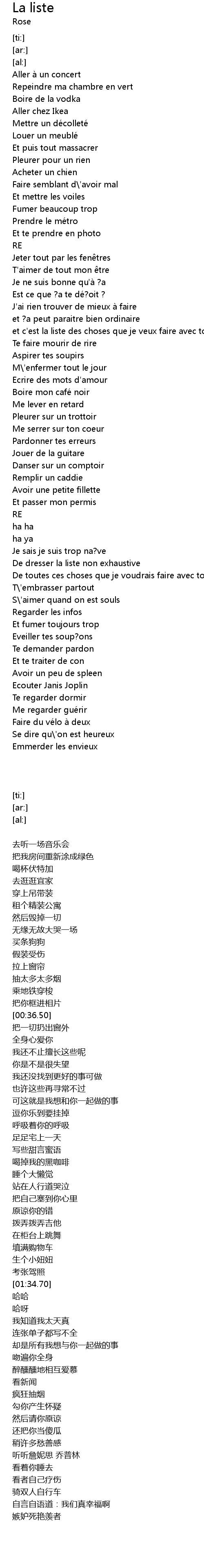 | [00:59.29] | et c' est la liste des choses que je veux faire avec toi |