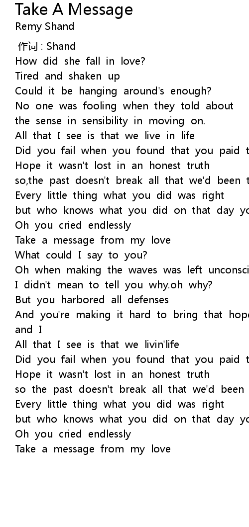 | [00:50.114] | Take a message from my love |