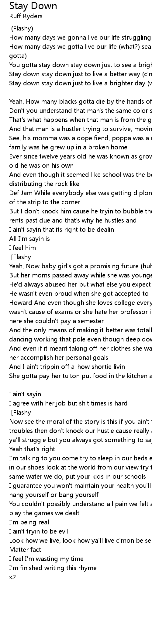 Stay down stay down just to live a better way [Flashy] |