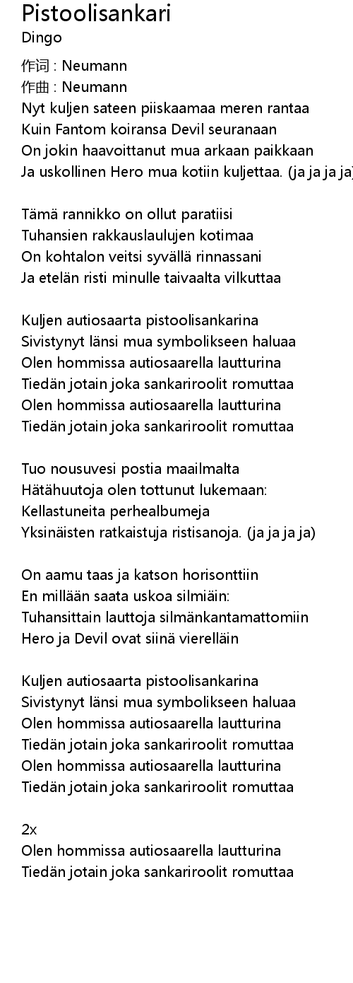 | 歌曲 | Pistoolisankari |