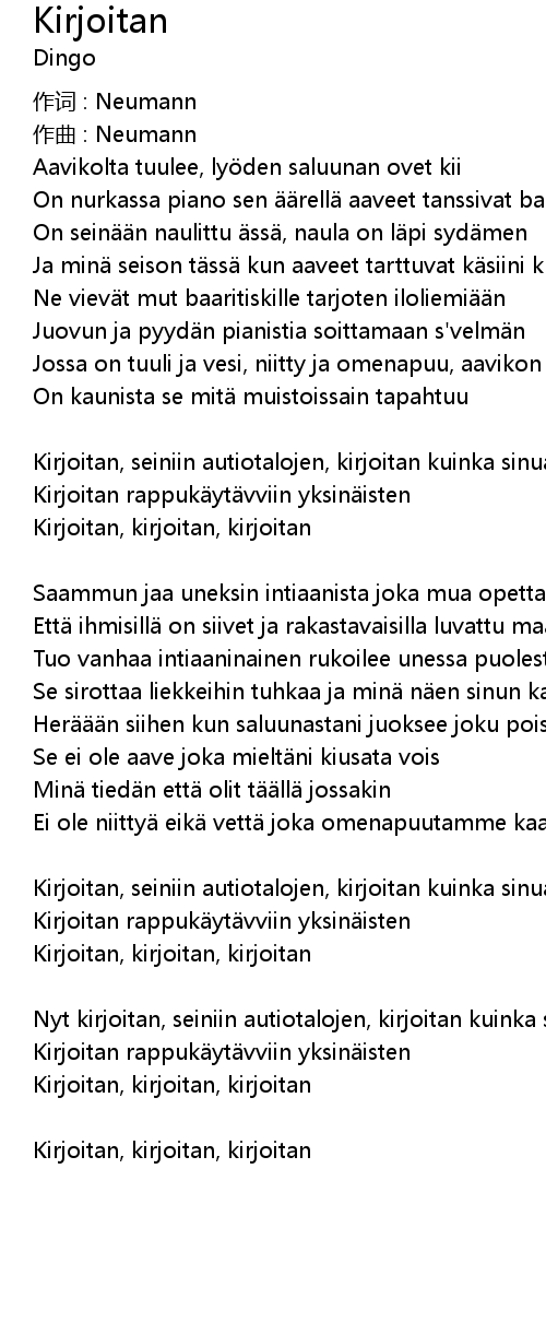 | 歌曲 | Kirjoitan |