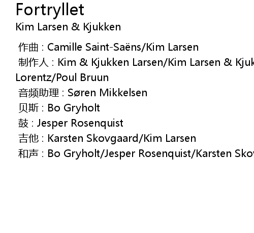 | [00:00.000] | zhi zuo ren : Kim Kjukken Larsen Kim Larsen Kjukken Max Lorentz Poul Bruun |
