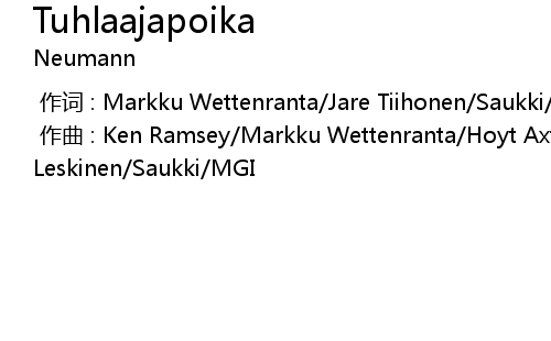 | [00:00.000] | 作词 : Markku Wettenranta/Jare Tiihonen/Saukki/MGI |