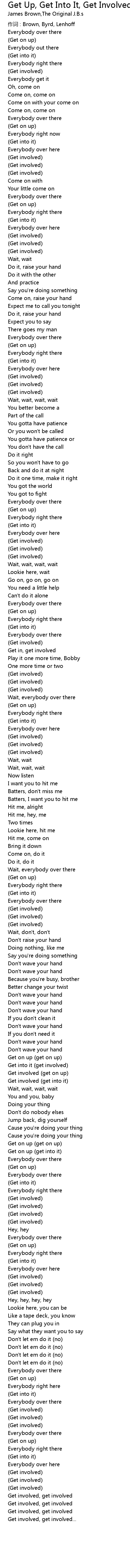 | 歌曲 | Get Up, Get Into It, Get Involved - Stereo Mix |
