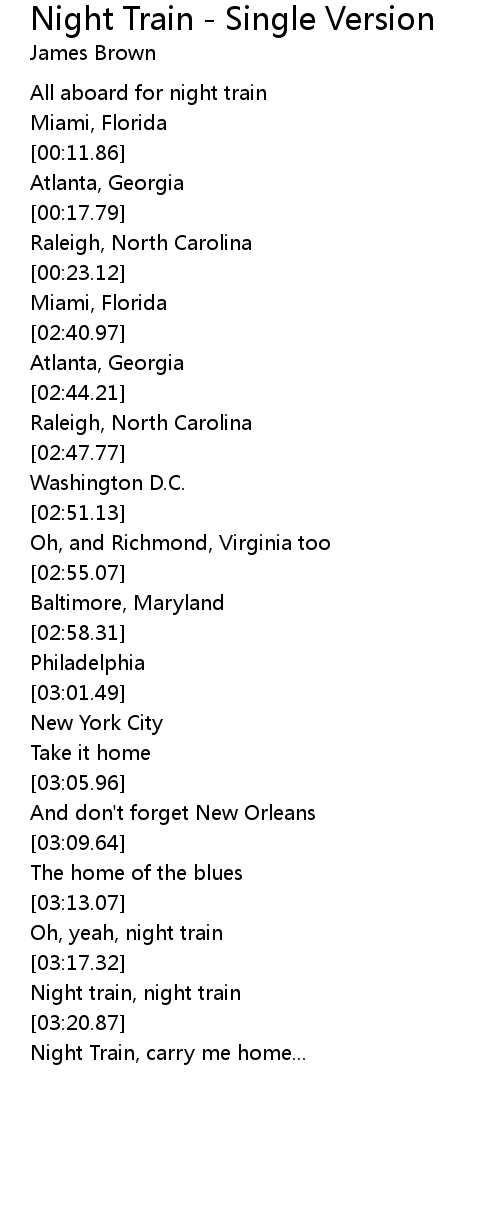 Night train, night train |