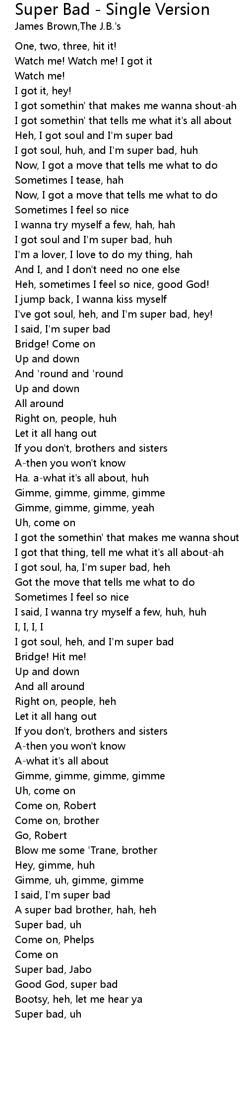 I've got soul, heh, and I'm super bad, hey!
