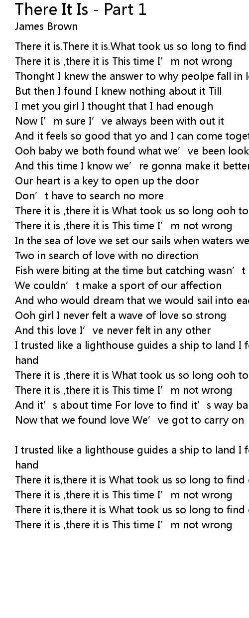 | There it is ,there it is What took us so long ooh to find each other baby | |