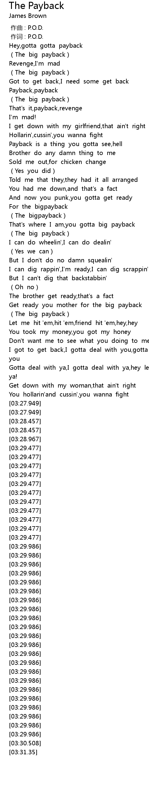 | 歌曲 | The Payback |