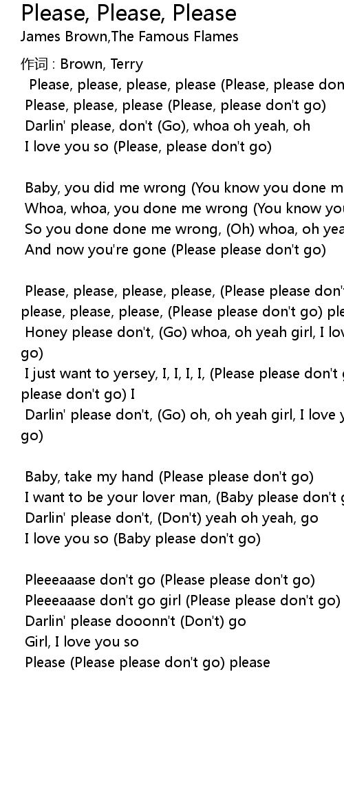 | Please, please, please, please, (Please please don't go) please, please, please, please, please, (Please please don't go) please | |