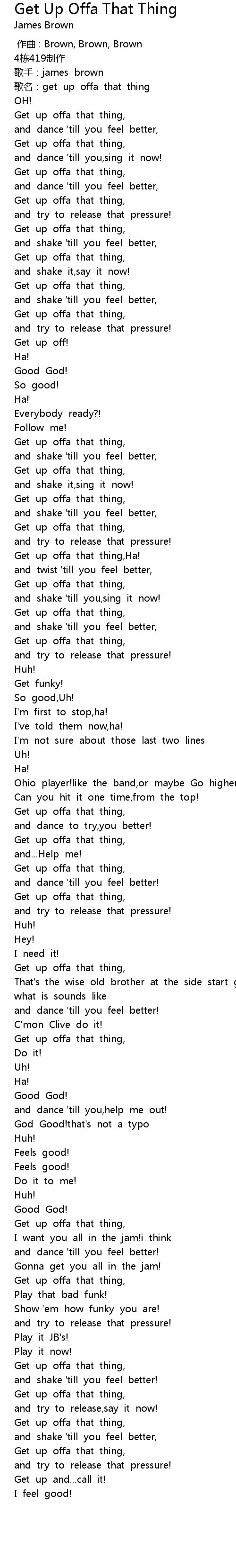 | 歌曲 | Get Up Offa That Thing |