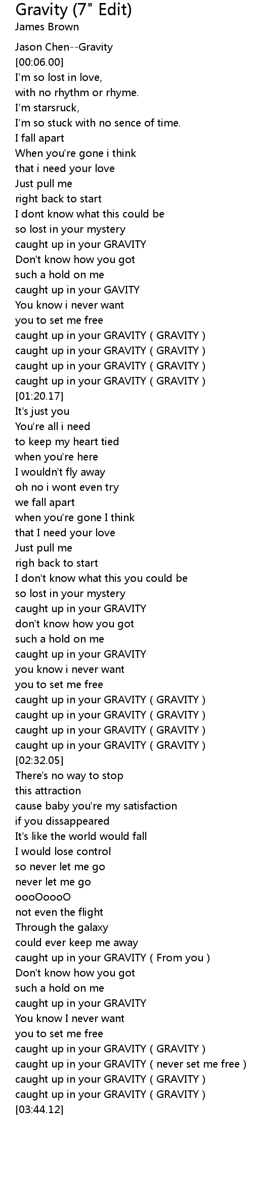 | [01:01.59] | caught up in your GRAVITY GRAVITY |