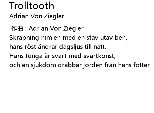 | [00:00.000] | zuò qǔ : Adrian Von Ziegler |