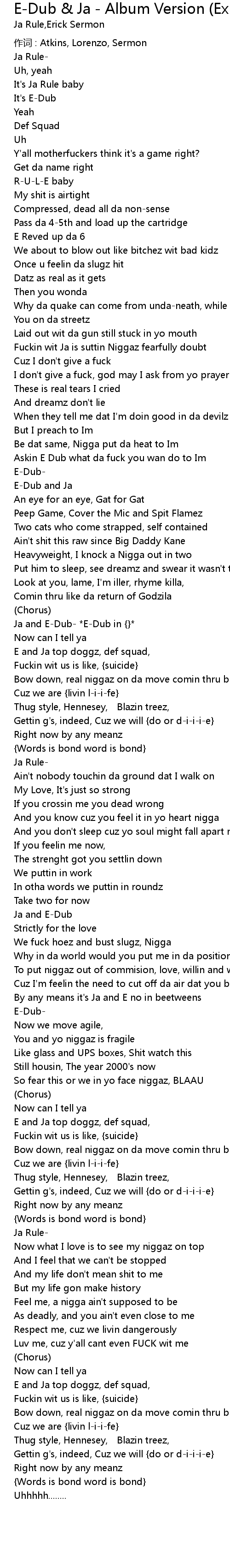 | 歌曲 | E-Dub & Ja - Album Version (Explicit) |