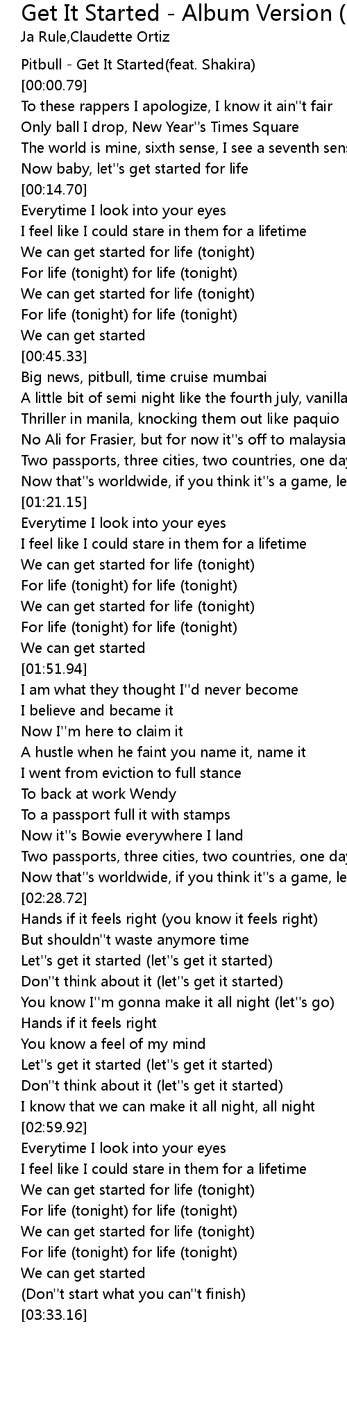 | [00:00.61] | Pitbull - Get It Started(feat. Shakira) |