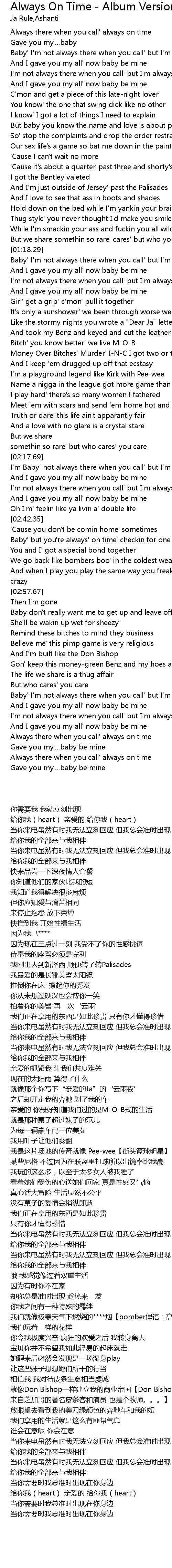 Baby' I'm not always there when you call' but I'm always on time |