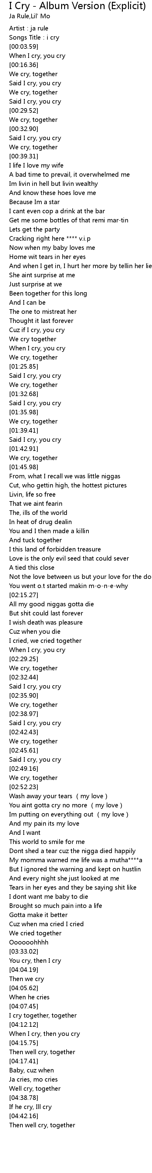 | [00:33.46] | Said I cry, you cry |