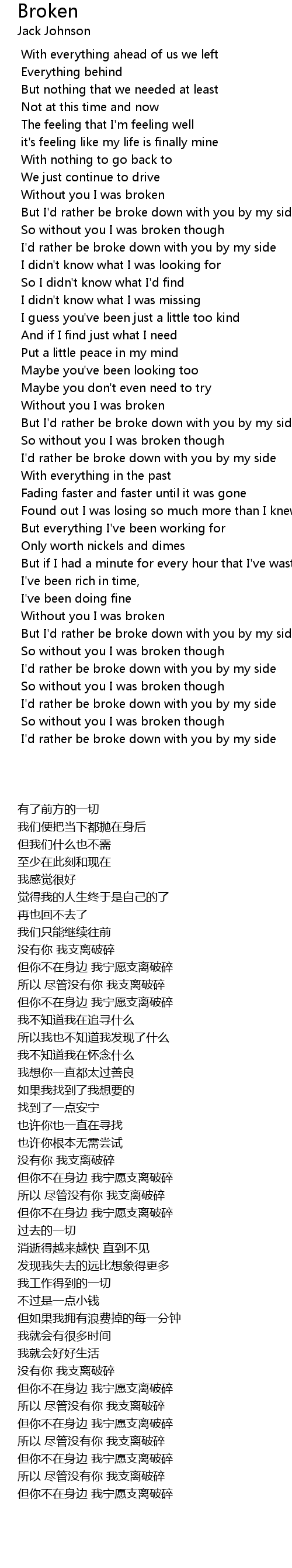 So without you I was broken though |
