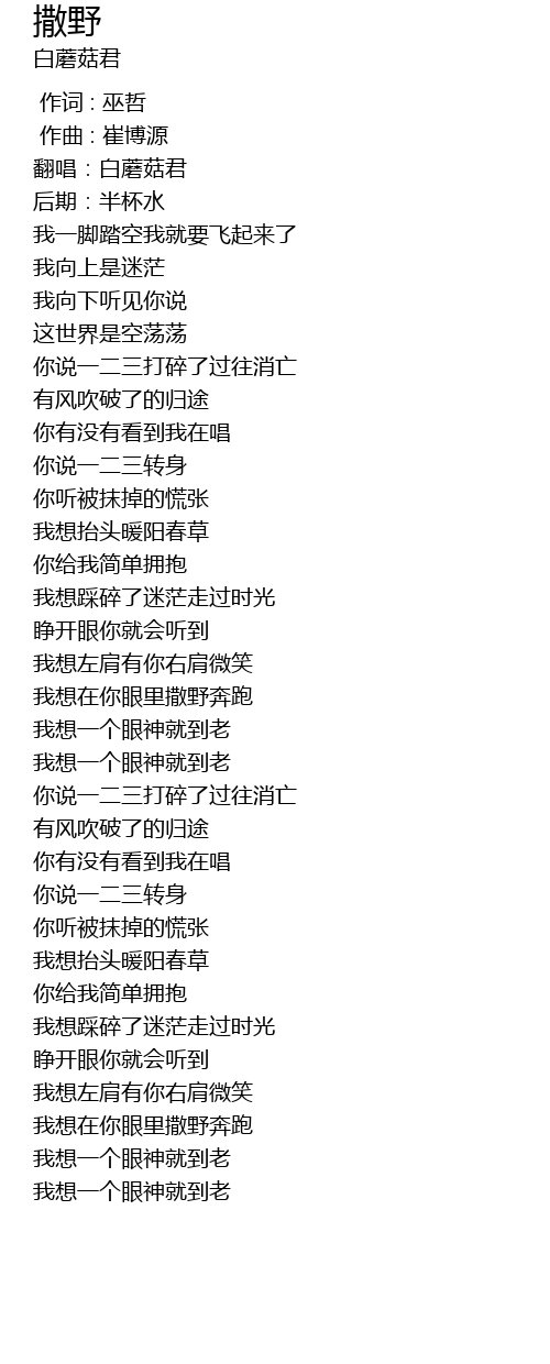 | [00:00.96] | 翻唱:白蘑菇君 |
