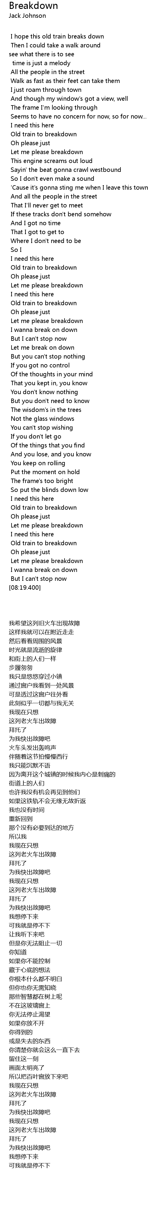 | [00:43.100] | 这列老火车出故障 |