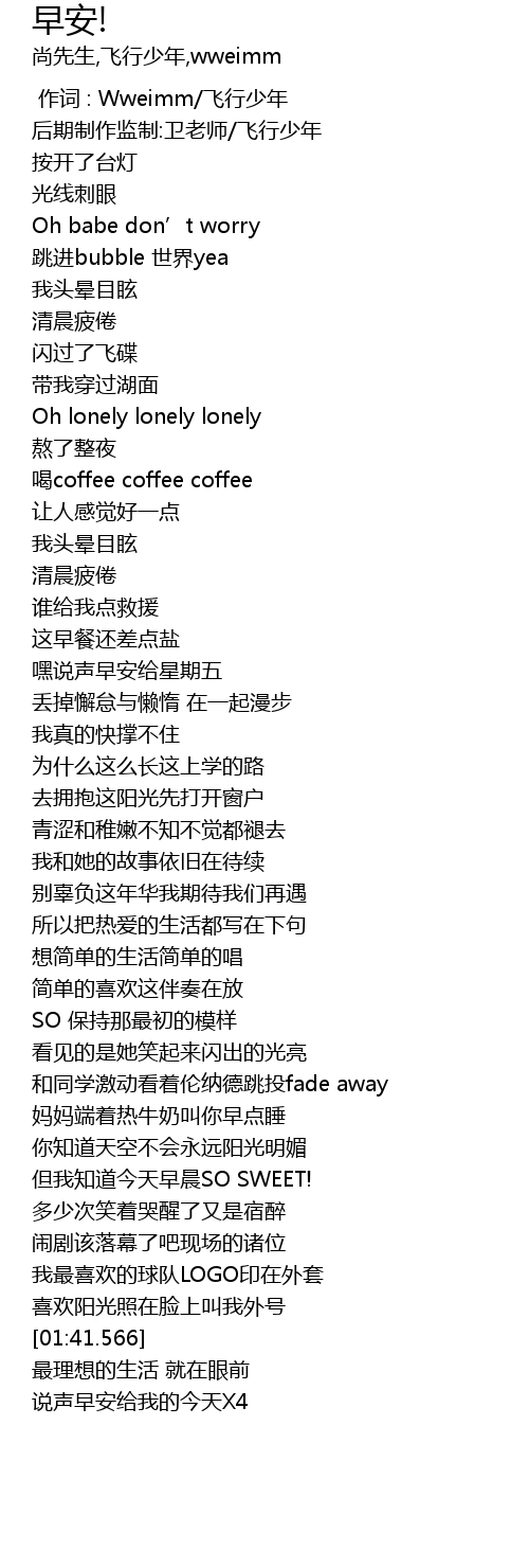 | [00:00.000] | 作词 : Wweimm/飞行少年 |