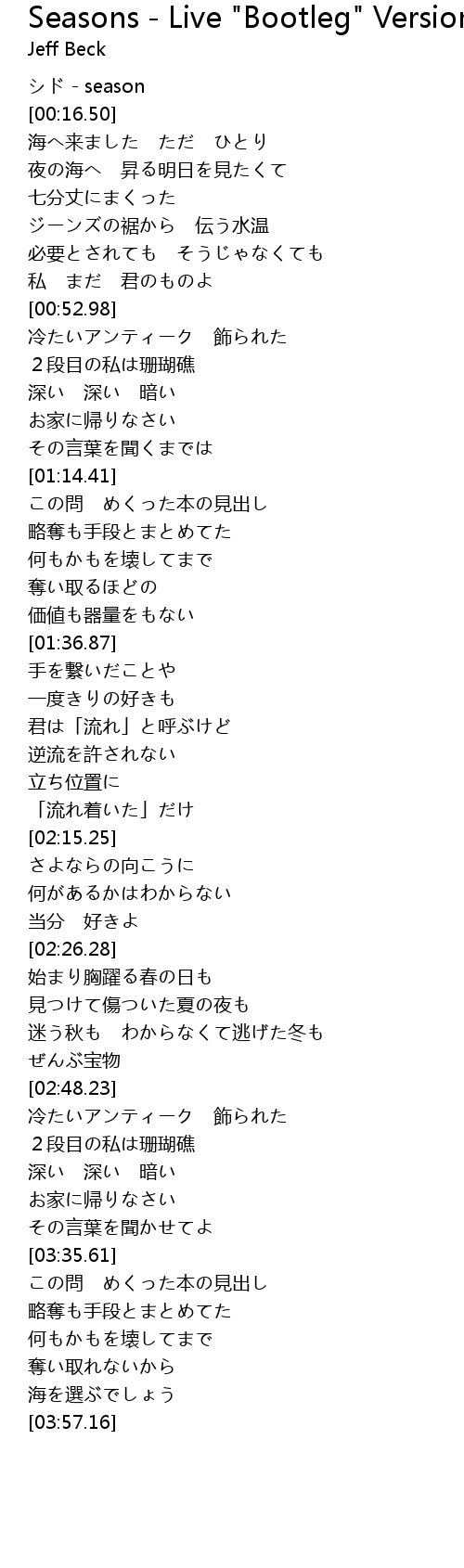 | [00:58.96] | 2段目の私は珊瑚礁 |