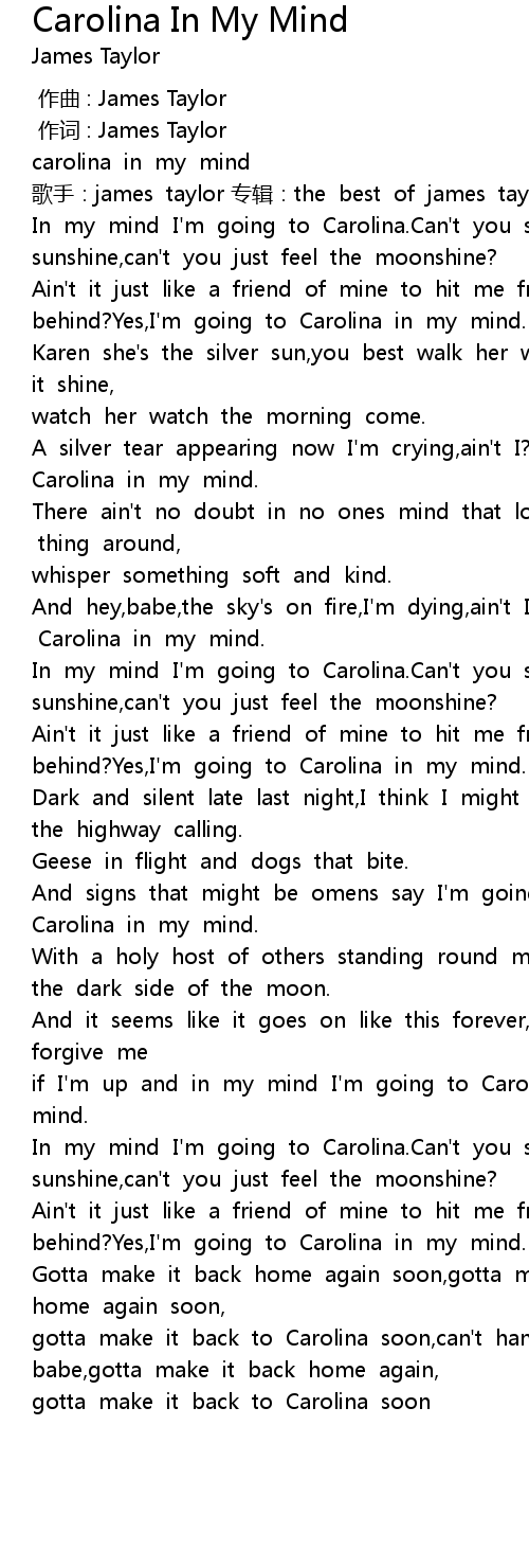 | 歌曲 | Carolina In My Mind |