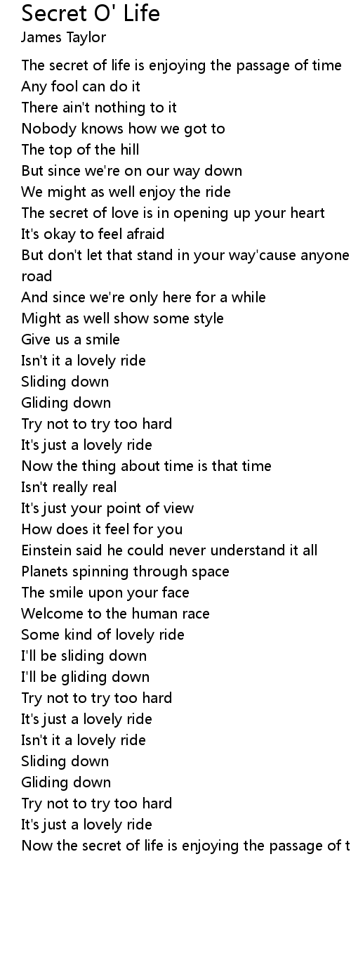 Now the secret of life is enjoying the passage of time |
