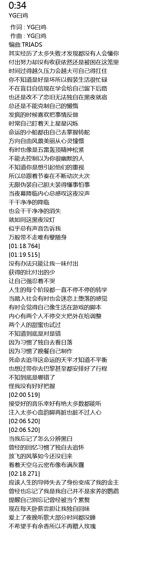 | [00:01.000] | 作曲 : YG白鸡 |