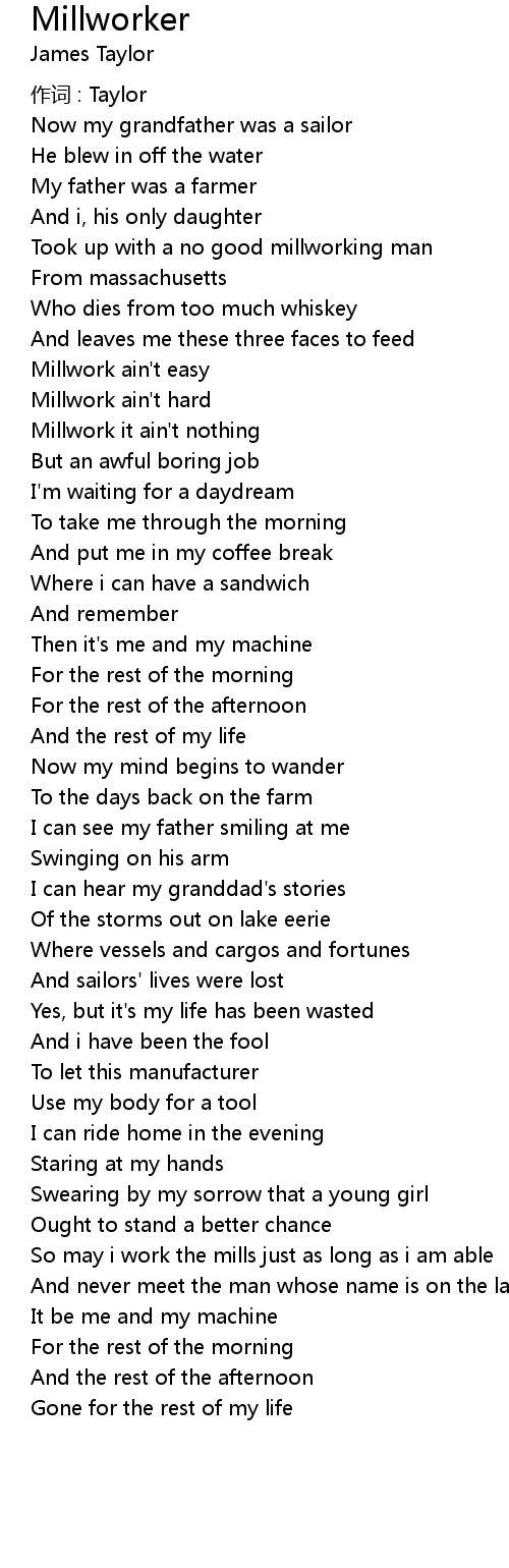 | 歌曲 | Millworker |