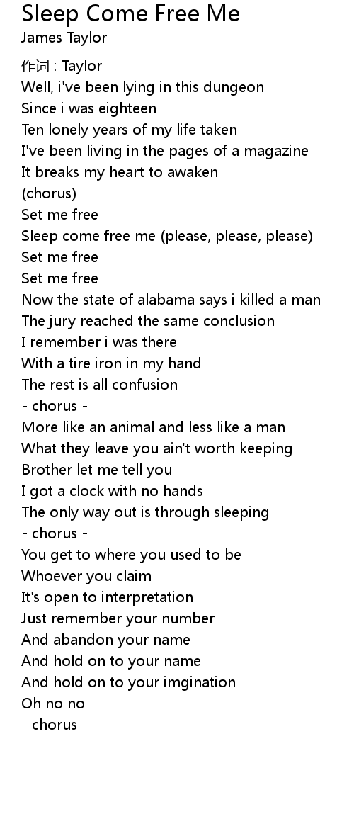 | Sleep come free me (please, please, please) | |